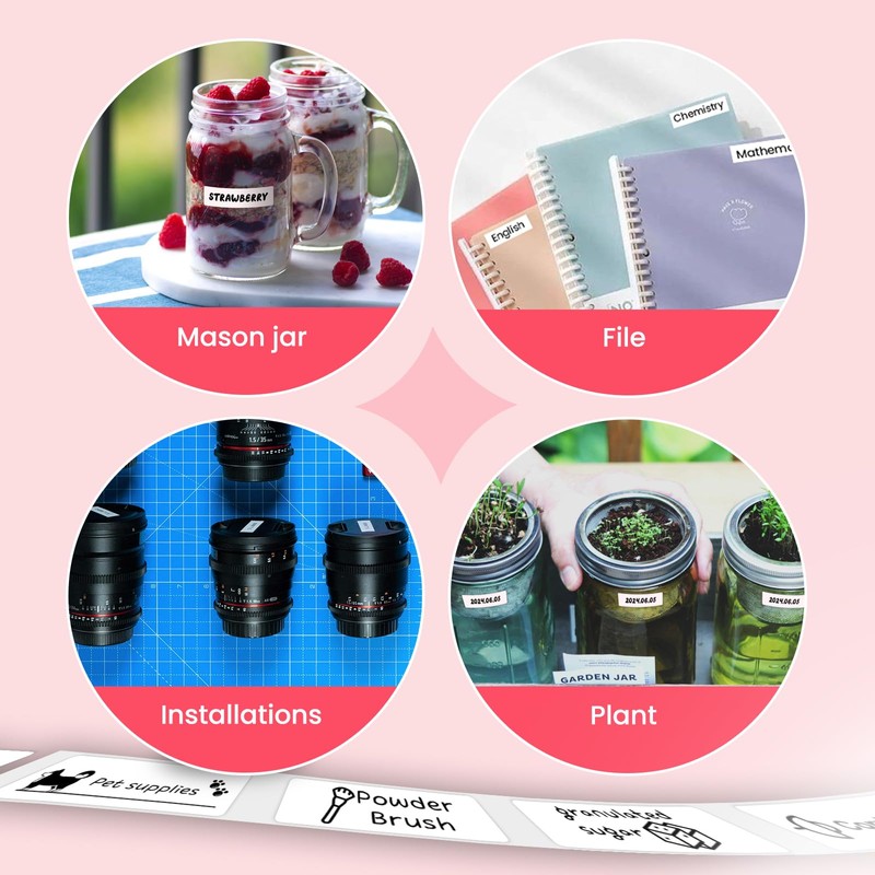 - Kitchen&Home Label Maker Machine - This mini label maker has tons of templates, icons, borders, and fonts within the app to manufacture your labels for kitchen storage, home organization, and even small business! Whether you want to print labels for spice, mason jars, storage labels, or files labels, there are a variety of beautiful templates for you to choose from