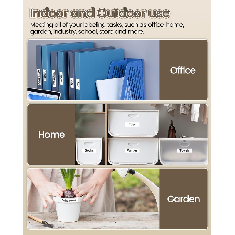 - Reliable and Long-Lasting: Built to withstand the test of time, our label maker tape won’t fade, peel, or wear out—even under sunlight, in damp conditions, or with frequent handling. You’ll save time and effort by skipping constant replacements.