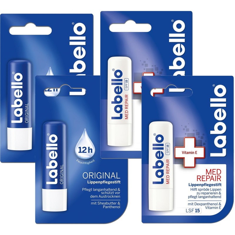 Labello 2x Classic Care, 2x Med Protection Lip Balm Bundle