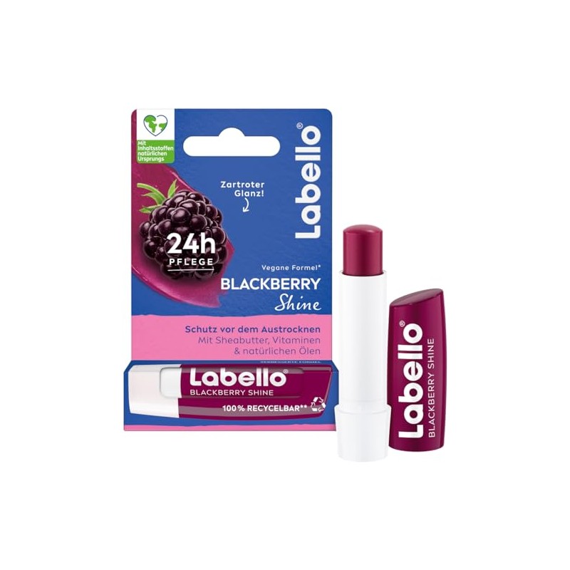 Labello Blackberry Shine Lip Balm with Soft Red Shine for 24 Hours Moisturising Lip Balm with Shea Butter and Blackberry Aroma (4.8 g)