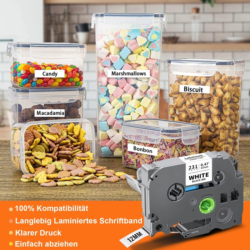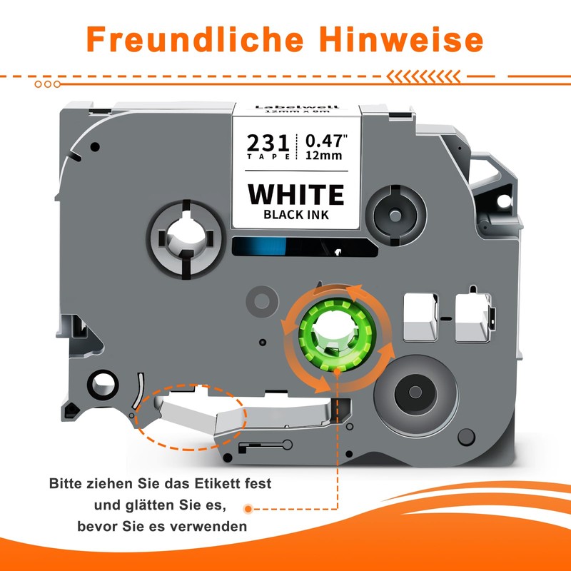 Labelwell Tze-231 Tze231 Tz-231 Label Tape, 12 mm x 8 m for Brother P-Touch 1010 H105 1000 D400 H100LB E100 H105WB D400VP D200BW E100VP P750W, Label Maker, Black on White, 2