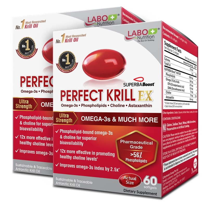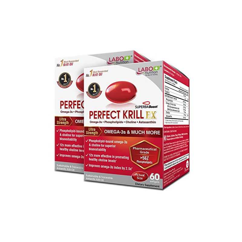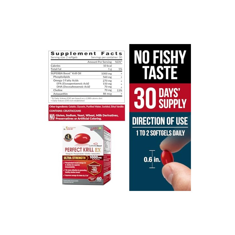 LABO Nutrition Perfect Krill Ex, 1000 Mg De Aceite De Krill Antrtico Omega 3 Epa Dha, El Contenido Ms Alto De Fosfolpidos(56) Con Colina, Astaxantina