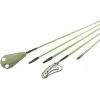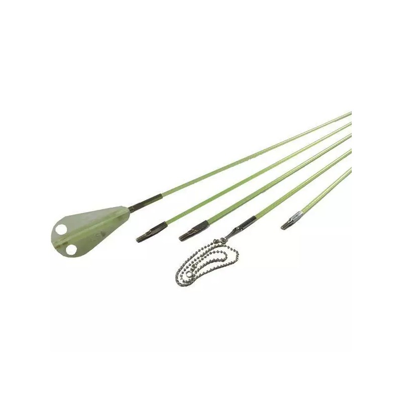 Consists of five 4/25" dia x 6ft green fiberglass rods—4 with male/female screw-on connectors, 1 with female on 1 end & bullet-shaped head with cross-hole bullnose at the other end to attach wire