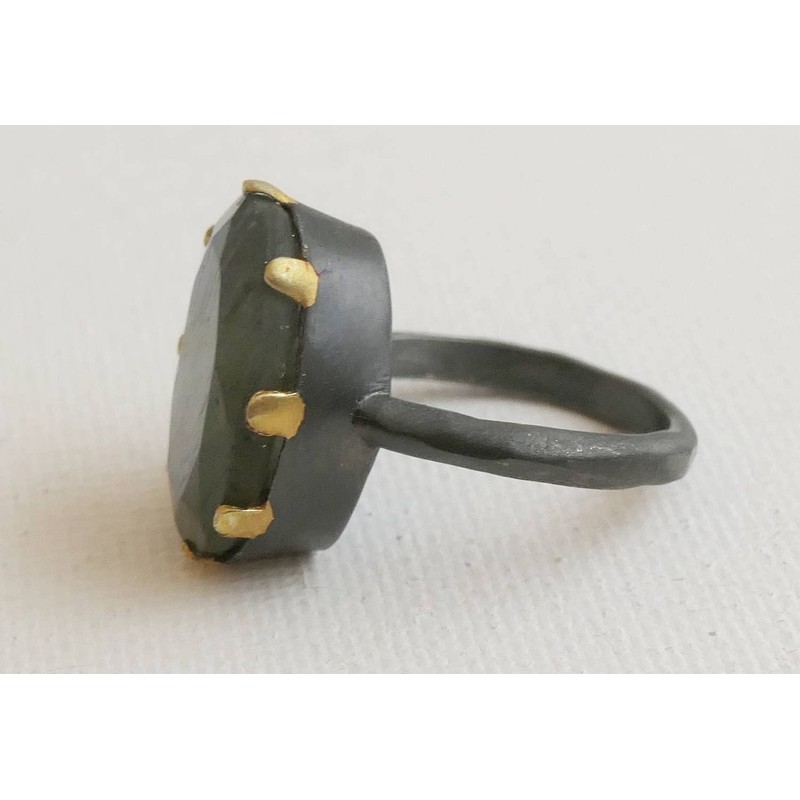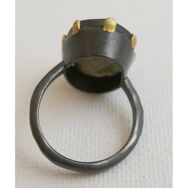 - Edles Mixed-Metal-Design – Der Stein ist mit Krappen aus 18K vergoldetem 925 Sterling Silber gefasst, während das Band aus oxidiertem Sterling Silber einen einzigartigen Vintage-Look verleiht.