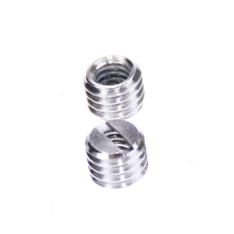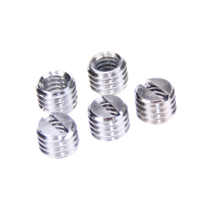 Camera Conversion Nut It is made of aluminuim alloy, and can achieve the conversion between any standard 3/8 inch thread and standard 1/4 inch screw.Mounting Adapter Screw The fittings can help users to professional-style head, monopods, ball heads, tripod heads, light stands, DSLR/ camera, camcorders and so on.1/4 Inch To 3/8 Inch Screw This is a kind of camera tripod thread adapter convert screw