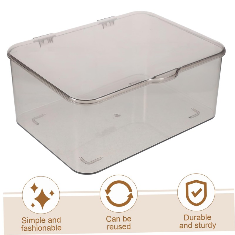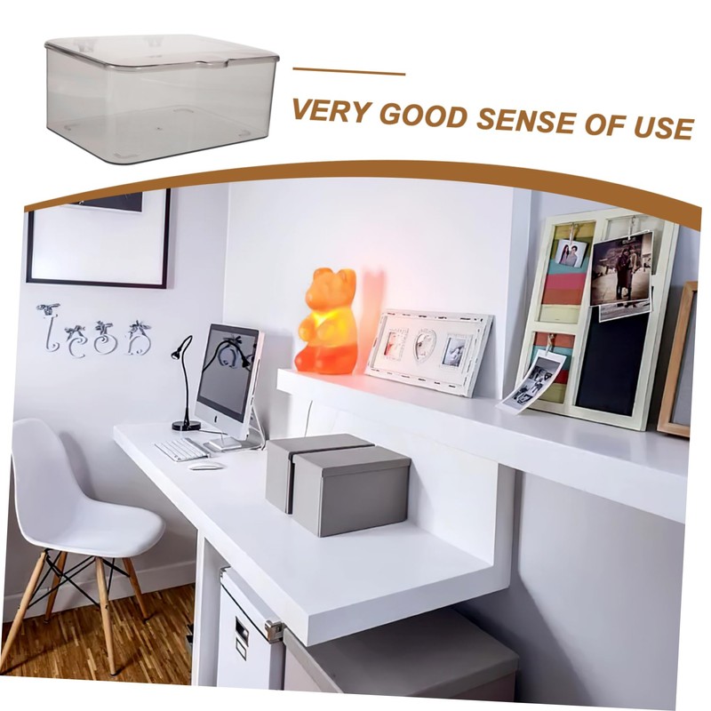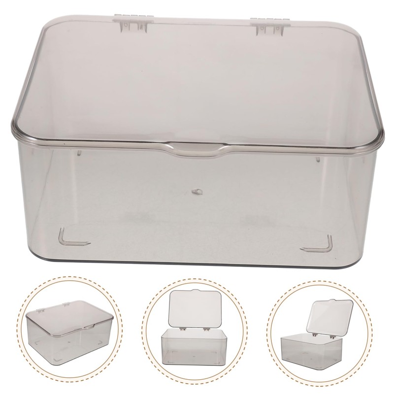 LABRIMP Hinged Storage Box for Desktop Organization Dustproof Multi-functional Organizer for School and Home Compact Grey Lid for Items and Sundries