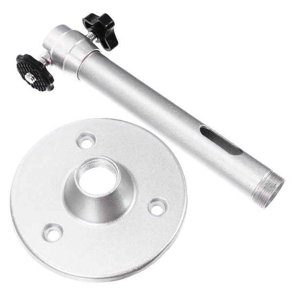 - Color: Silver ceiling mount projector holder.