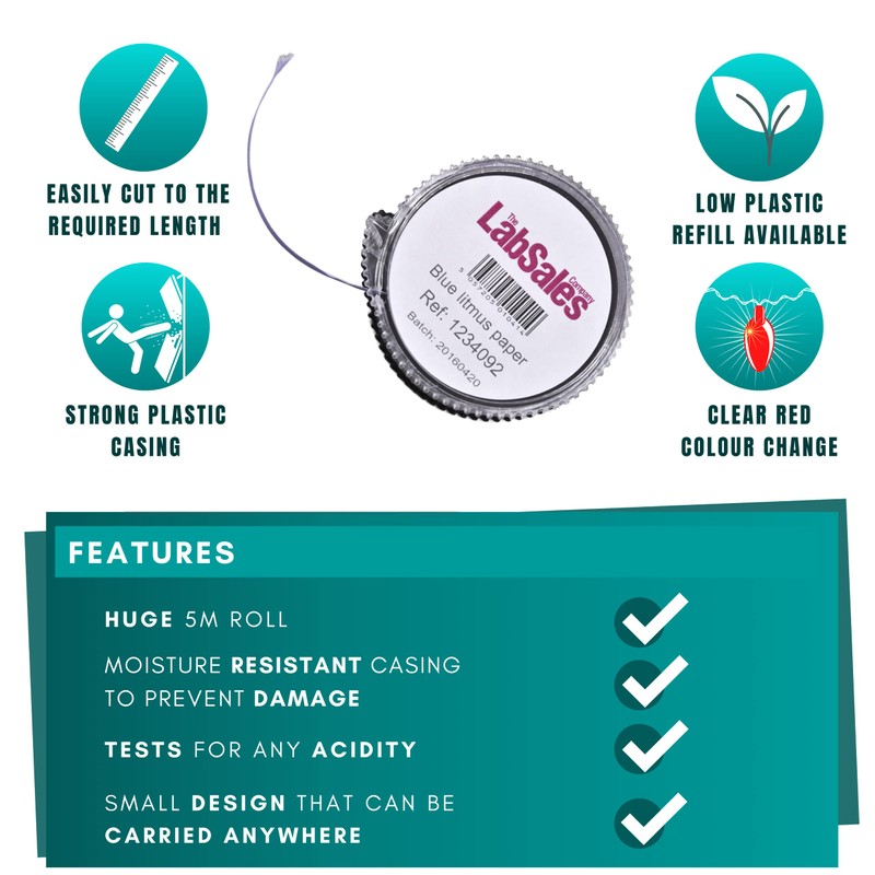 - 【5M LITMUS BLUE PAPER ROLL】A massive 5M Roll of Litmus Indicator Paper, Easy for you to tear to the perfect length needed, Simply touch to any liquid and instantly know if there are any acidic conditions in your test