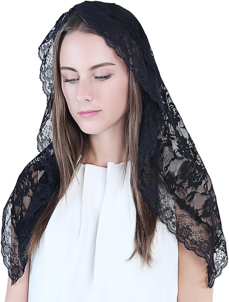 Lace Mantilla Catholic Veil Church Veil Chapel Veil Head Covering Latin Mass - Color: black