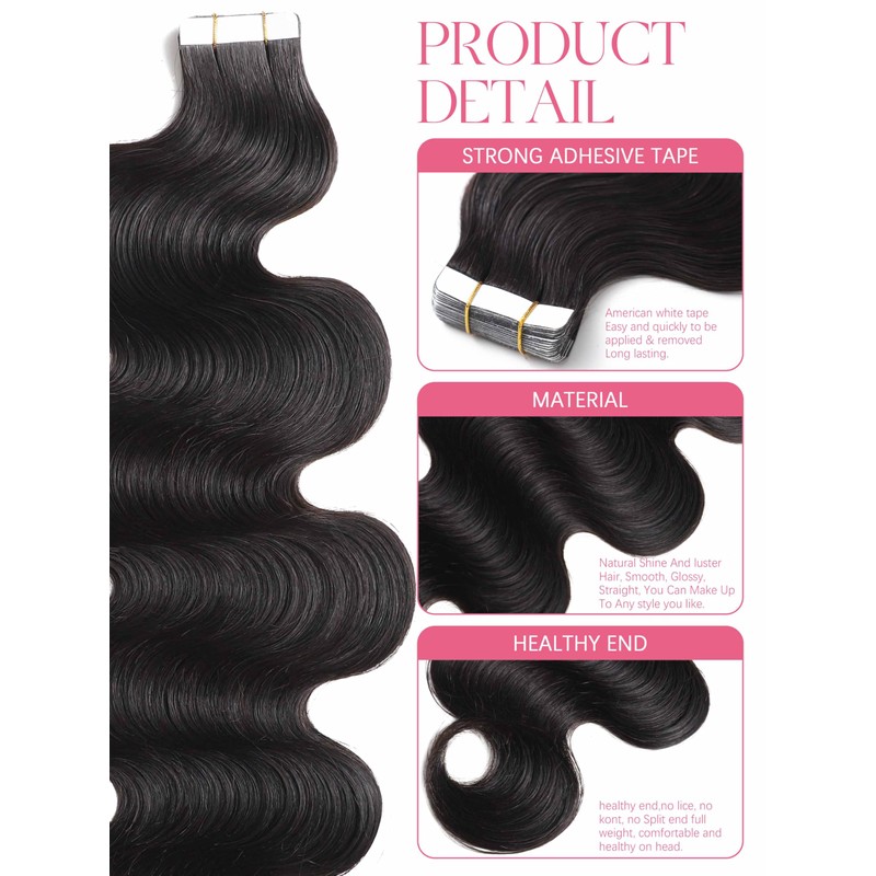 Lacer Body Wave Tape in Hair Extensions Human Hair 22 Inch Black Tape in Extensions Real Human Hair Natural Black Wavy Invisible Hair Extensions 50g 20 PCS