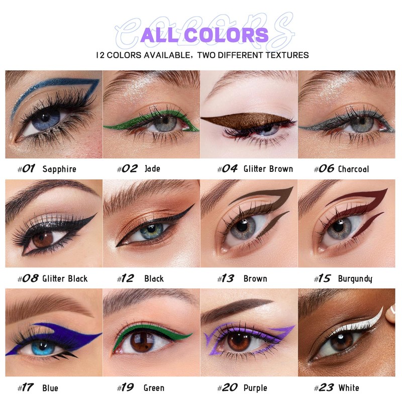 - Intense Pigmentation: Our long-lasting liquid eyeliner delivers rich, highly pigmented color in a single stroke. Its matte or glitter formula ensures vivid definition that stays true all day, creating a captivating look that won't fade;