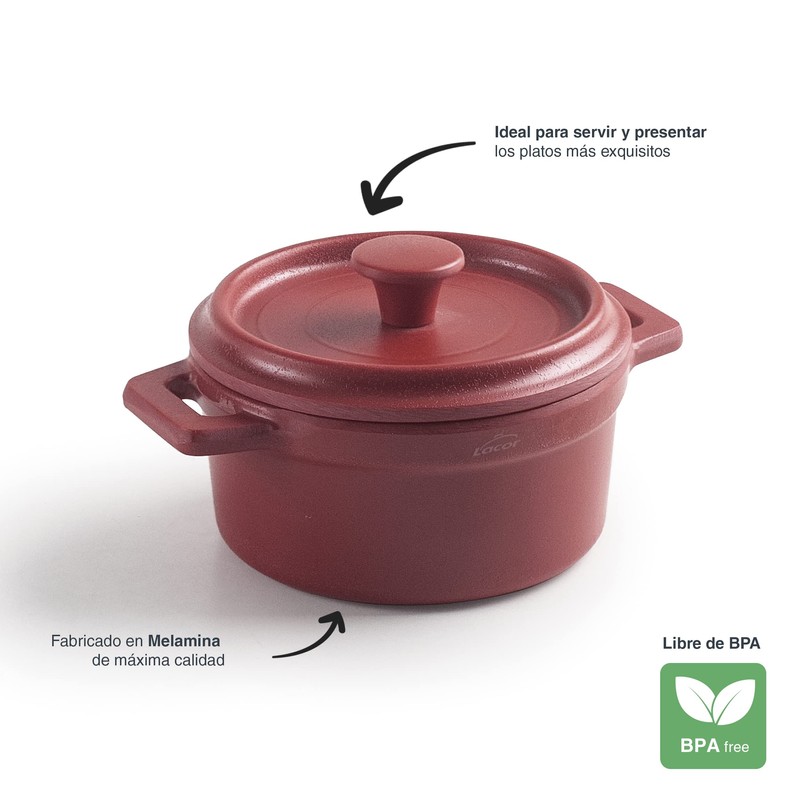 Lacor - 63396 Mini Pot with Lid Melamine Dishwasher Safe BPA Free Diameter 10 cm 210 ml Red