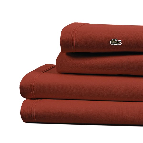Size:Queen  |  Color:Chili Pepper The lightweight feel of Lacoste's solid percale sheet set comes in rich, classic hues with the signature crocodile logo-perfect for any bedroom