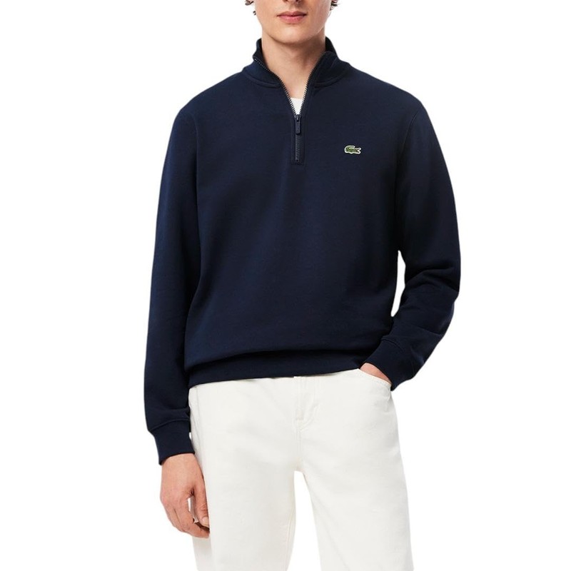 Lacoste Men's Core Collection Regular Fit Classic Zip Up Mock Neck Sweatshirt, Navy Blue, Large