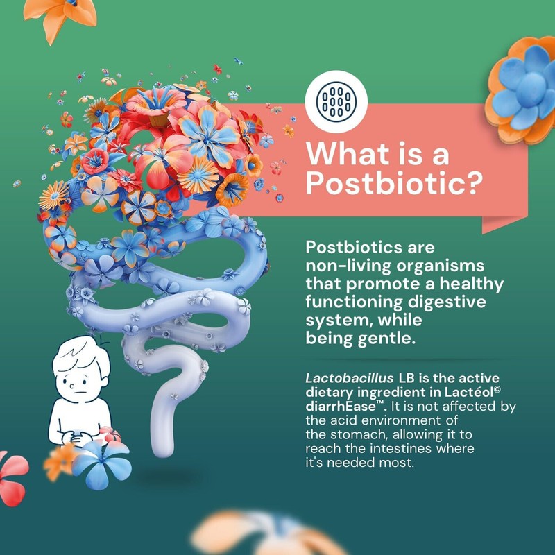 - Safe and drug free postbiotic: Lactéol diarrhEase Kids contains Lactobacillus LB which helps to restore the balance of good microorganisms in the gut following occasional diarrhea and naturally helps to flush out unfriendly microorganisms.