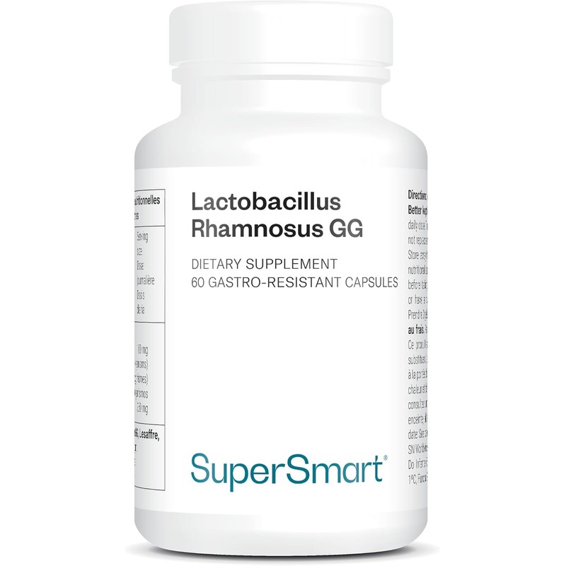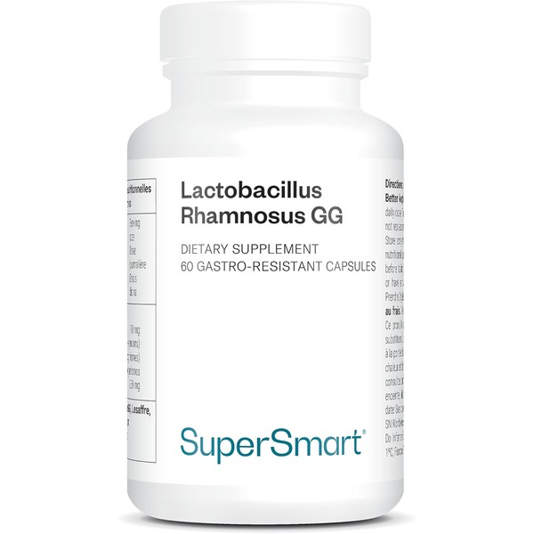 Lactobacillus Rhamnosus GG - Probiotic - Balances Microbiota and Gut Flora - Boosts The Immune System - Stimulates Lactobacillus Production - 60 Capsules - Vegan - Gluten-Free - Non-GMO - SuperSmar