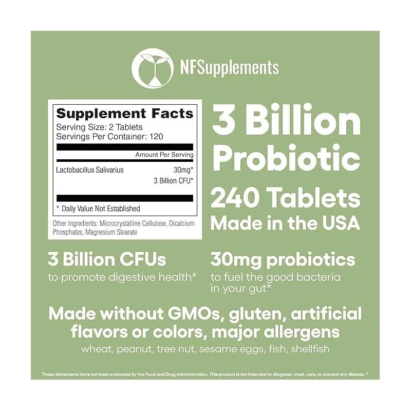 Lactobacillus Salivarius Probiotic Supplement 240 Tablets 3 Billion CFU