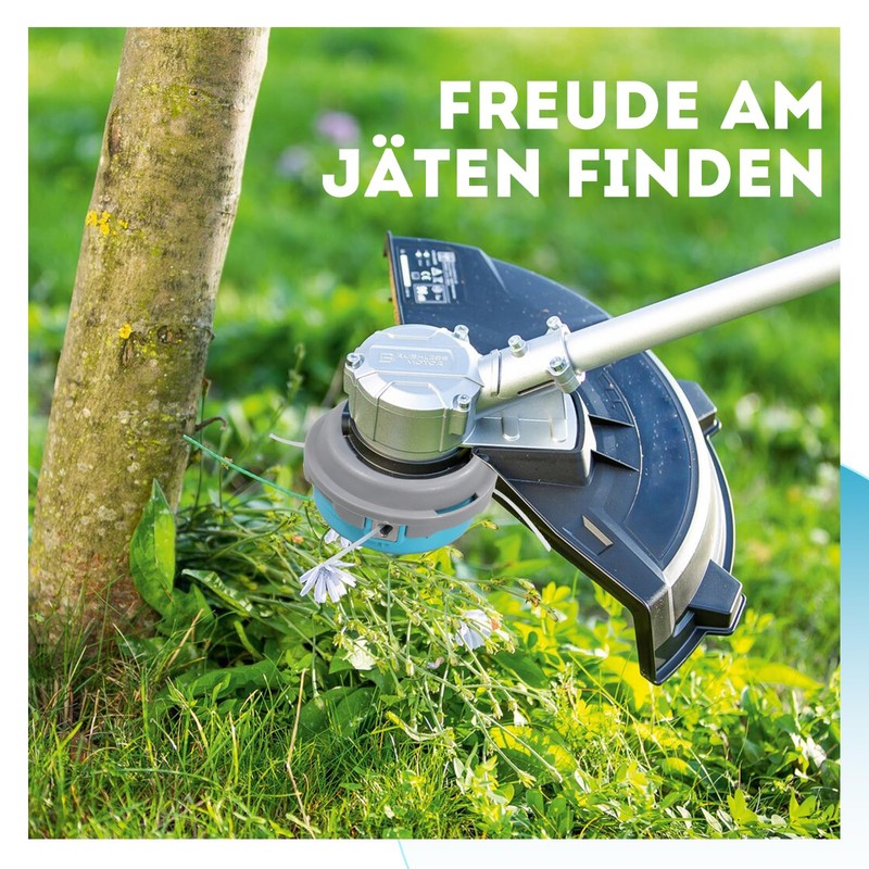 - Wide range of applications: for lawn trimming, around trees, between shrubs, along edges, walls and fences. The cutting thread is automatically adjusted after tapping the mowing head - during the