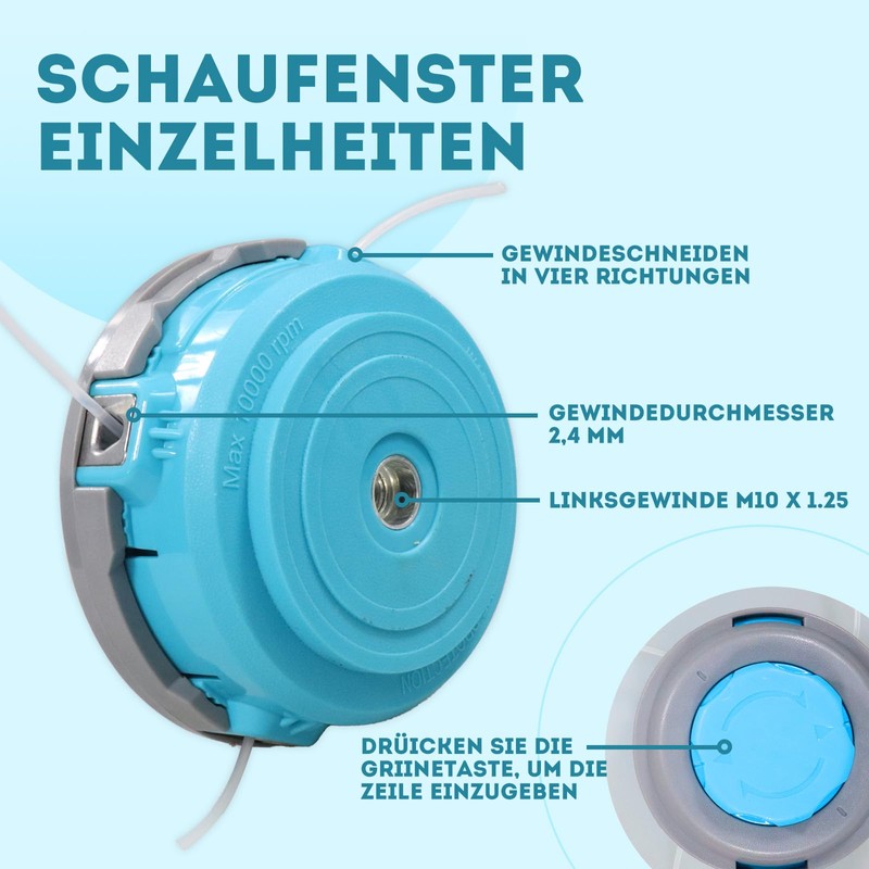 LADAMI Line Head Mowing Head Line Spool Brush Cutter Mowing Line Easy Load & Go M10 x 1.25 for Grass Trimmer with 2.4 mm x 50 m Trimmer Line