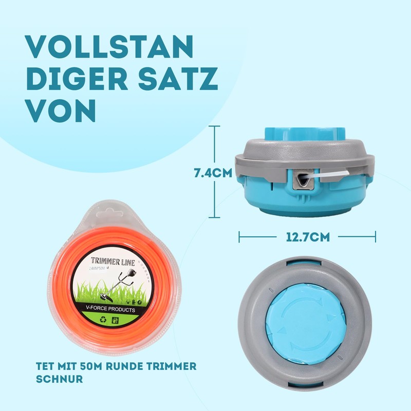 - Equipped with 50 m round trimmer line: material: excellent quality nylon has a high strength and break resistance. Efficient and easy to use. Soak the trimmer line in water for 5-10 hours before use. This makes the mower line firmer, less prone to breakage and trimming becomes more effective