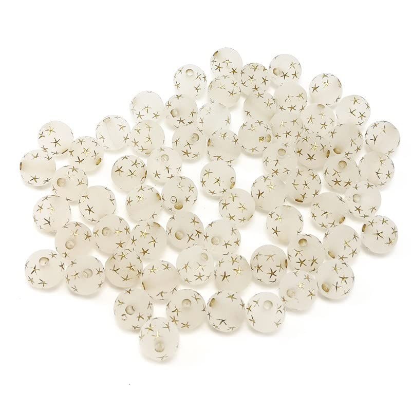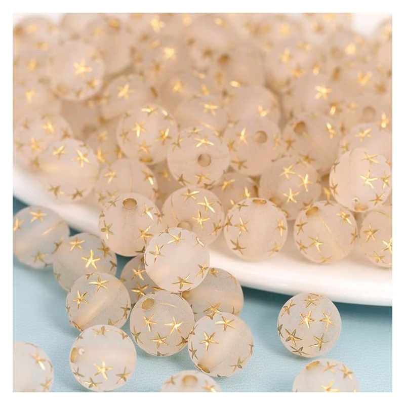 LadayPoa 150pcs 10mm Acrylic Frosted Gold Star Round Beads Glass Ball Beads for Jewelry Making Plastic Bubble Beads Charms for Bracelet Making Necklace DIY Bubblegum Beads Christmas Ornament Gifts