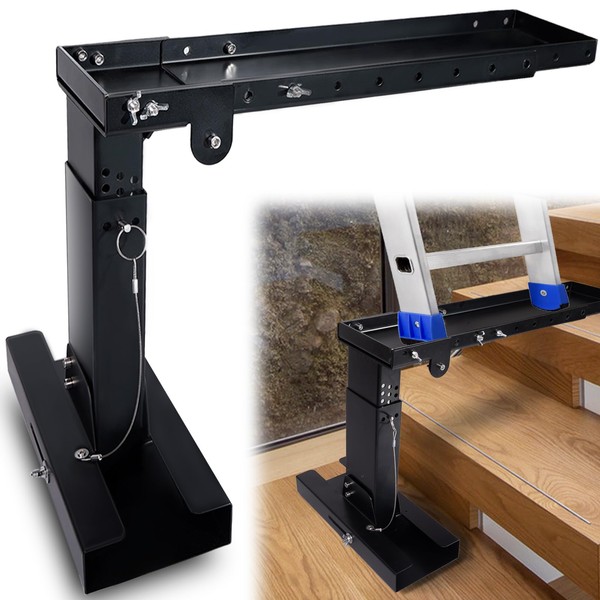 • Adjustable height and length: The length range of the ladder leveler for stairs is 20 inches - 29.9 inches, and the adjustable height range is 10.4 inches - 17.5 inches. This retractable staircase platform enables you to easily customize it to meet your needs, providing the ideal height and length for any job. Provide stability and safety for your ladder.