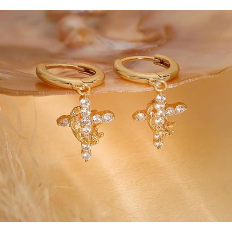 - A treasure trove of fashionable women's gold earrings, exquisite pendant earrings with a women's pendant cross shape, combining exquisite fashion sense, wearing on the ear, showing unique fashion taste.