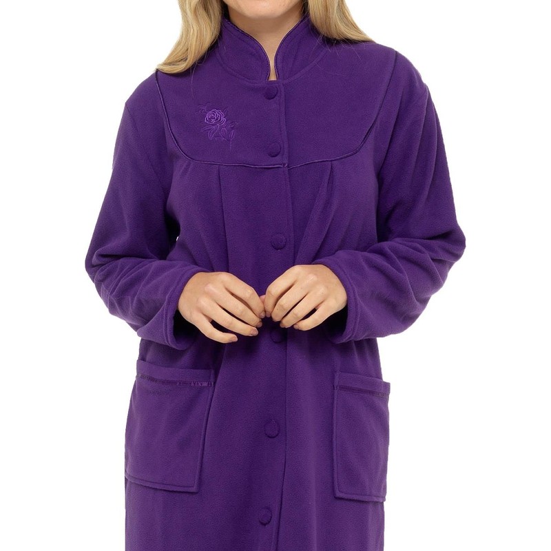 Ladies Fleece Dressing Gown Size 10 to 26 with Button Front, Purple