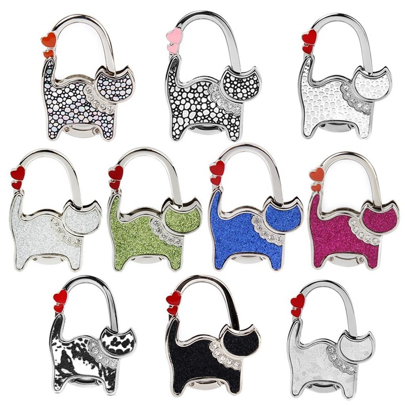 • Ladie's Table Bag Handbag Purse Hook Hanger Holder Cat Pattern Black