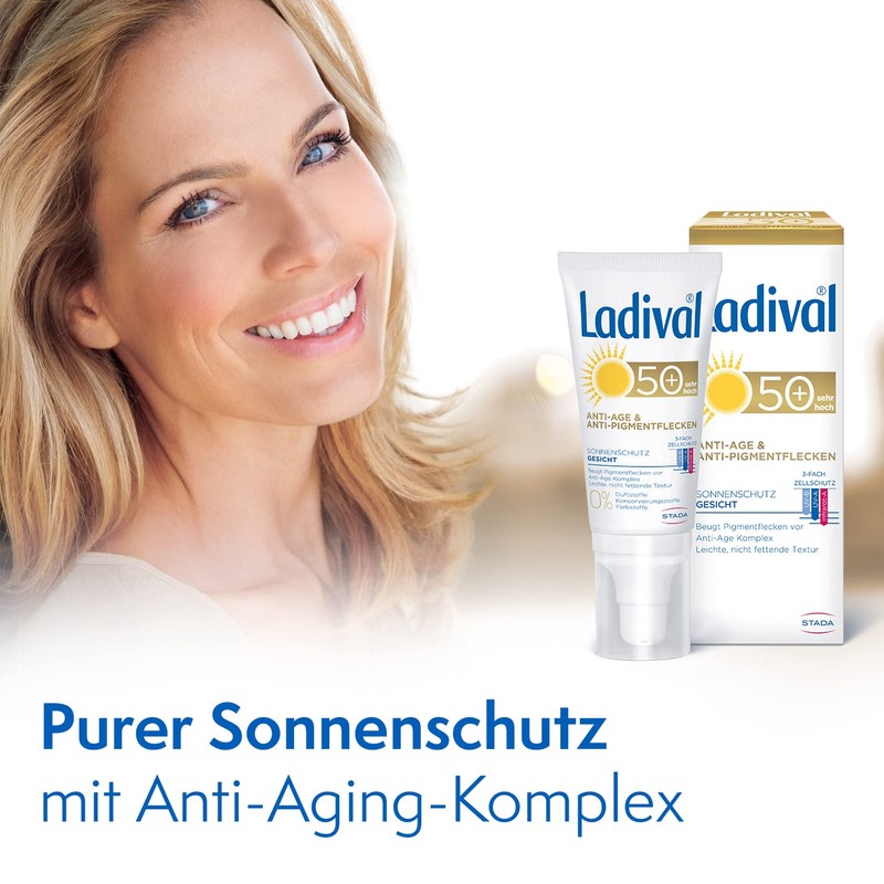 LADIVAL 167514 Anti-Age & Anti-Pigment Spots SPF 50+, Fragrance-Free Sun Cream for Face, Neck, Cleavage and Hands, No Colourants or Preservatives, 50 ml, SPF 50+