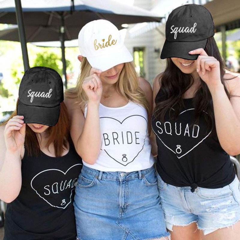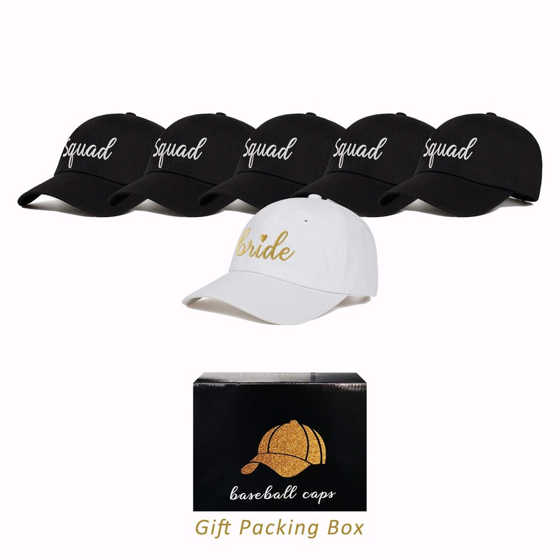 - El paquete incluye: 5 gorras de equipo de novia, 1 gorra de novia.