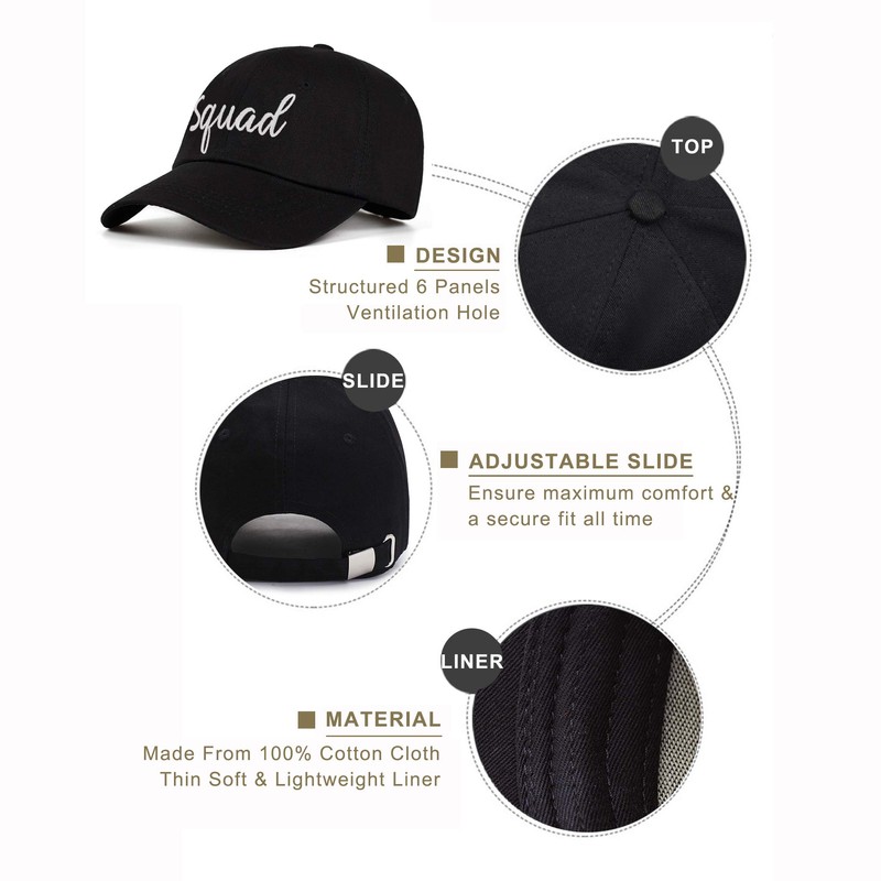- Diseño ajustable: la gorra de béisbol del equipo con hebilla de metal inoxidable ajustable en la parte posterior, adecuada para personas con circunferencia de cabeza de 55 a 61 cm, longitud del ala aprox. 2.8 in.