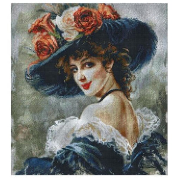 Lady in Hat (4) Counted Cross Stitch Kits, 14 Count aida Fabric, 100% Cotton Thread, 150x160 Stitch,26x28cm Counted Cotton Cross Stitch kit
