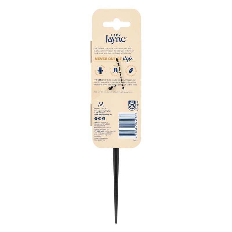 • Tinting brush with strong nylon bristles to help distribute solution through hair and a long tail to assist with sectioning