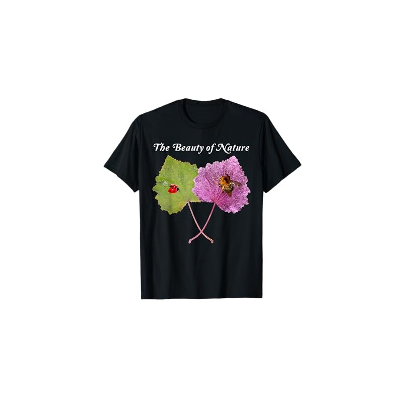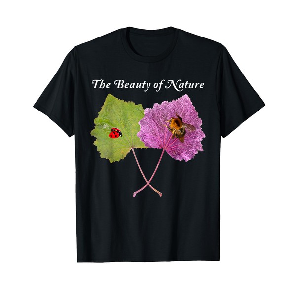 Ladybug, Bumblebee, green purple leaves, Cute, Natural T-Shirt