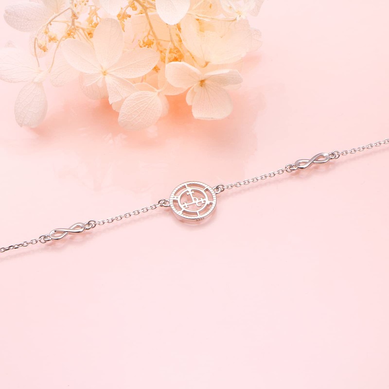 Ladytree S925 Sterling Silver Sigil of Lilith Infinity Anklet Bracelets Link Jewelry Gifts for Women Chain 9+1.5 inches