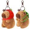 LAEKIY 2pcs Capybara Plush Keychain for Backpack, Cute Kawaii Capybara Animal Stuffed Key Chain for Bag Handbag (Turtle, Strawberry)
