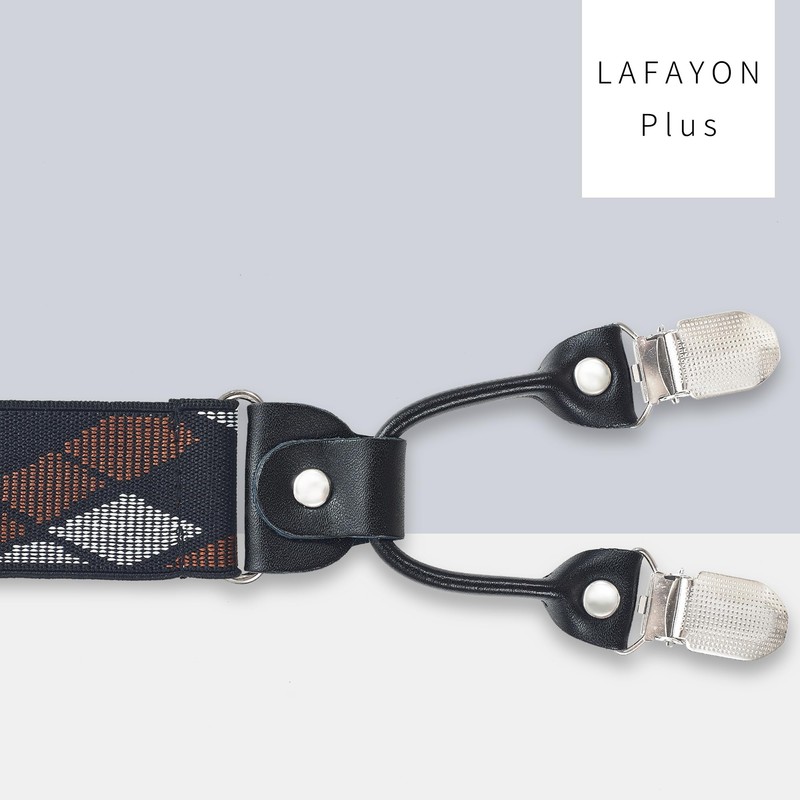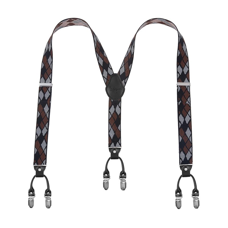 Lafayon Braces for Men 6 Buckles Y Back Striped Heavy Duty Men's Braces Durable Elastic Adjustable Braces Gift Box, Brown Diamond Pattern