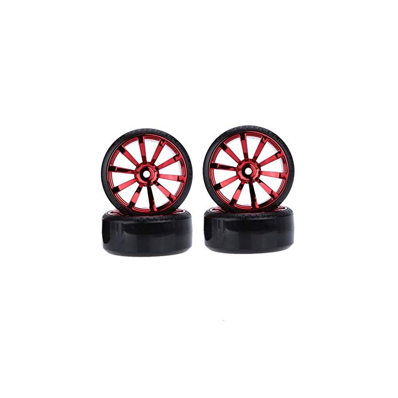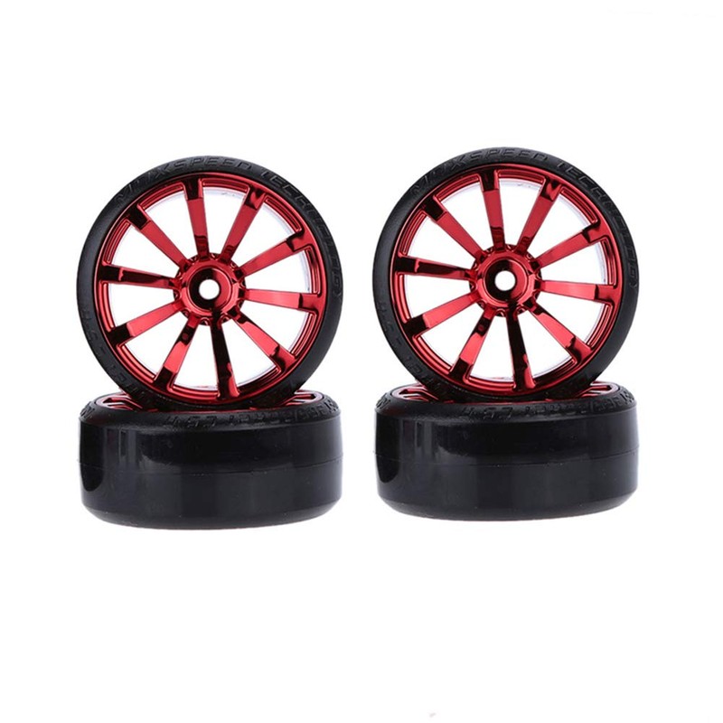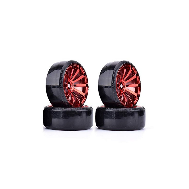 LAFEINA RC Plastic Wheel and Tire Set, 63mm Hard Tyres for 1/10 Drift Car Traxxas HSP Tamiya HPI Kyosho On-Road Drifting Car (Red)
