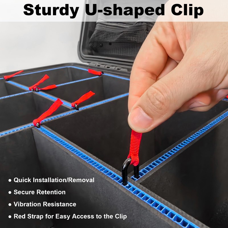 - Quick-Release U-Clips & Red Pull Tabs – No tools required! The sturdy U-shaped clips lock partitions in place, while the bright red pull tabs let you remove and rearrange them in seconds.