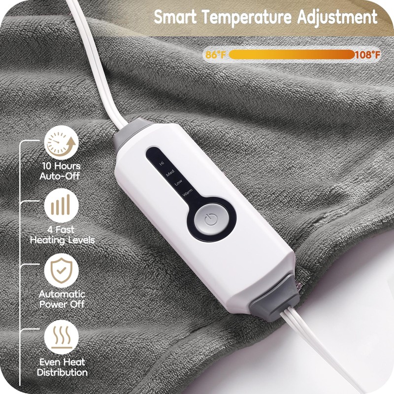- 【Precise Temperature Adjustment】The size of the electric blanket is 72 "x 84" inches, with 4 temperature adjustments to perfectly meet the temperature needs of different body sensations.