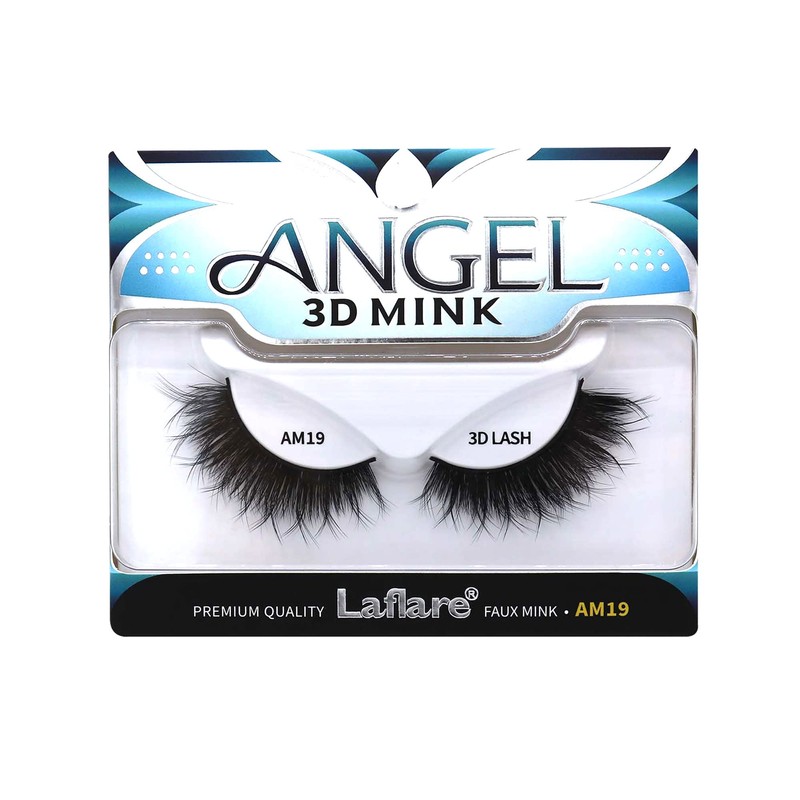 Laflare 3D MINK ANGEL Eyelashes, Soft, Feather-Light, Double-Layer, Voluminous, Glamorous, Fluffy, Striking Look, Reusable Premium Quality False Mink Lashes (AM19)