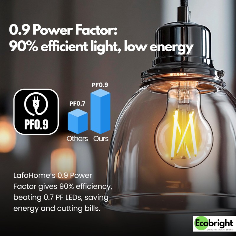 LafoHome EcoBright 8PK Dimmable A19 LED Filament Bulb, 5W (40W Equivalent), E26 Base, 450 Lumens, CRI90+, Flicker-Free Clear Glass, Energy Star Title 20, Warm White 2700K