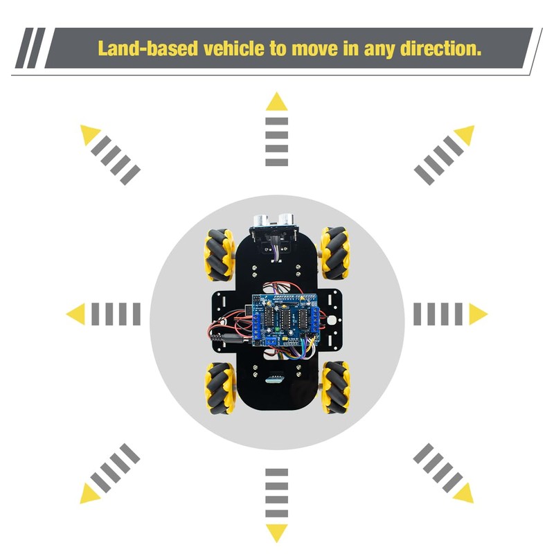 - The unique design of the Mecanum wheels allows the robot car to move forward, backward, sideways and diagonally freely.