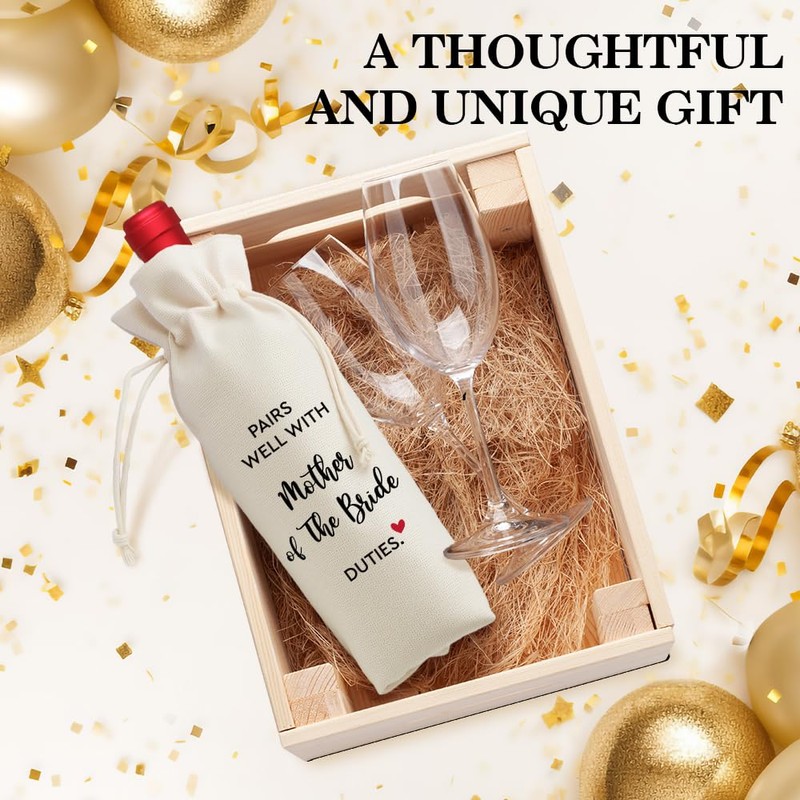 LAGZDFC Pairs Well With Mother Of The Bride Wine Champagne Gifts Bag, Reusable Wine Wrap Bag, Wedding Engagement Gifts for Mother from Groom Daughter, Thank You Gifts For Mother-in-law