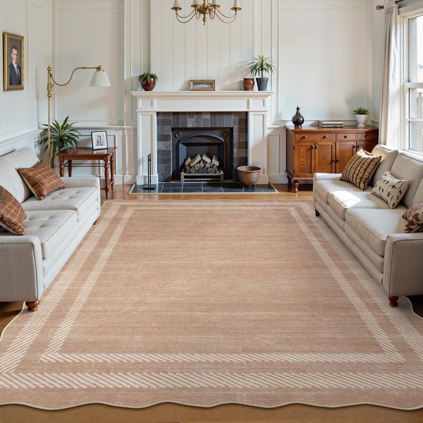 Lahome Scalloped 9x12 Area Rugs for Living Room Bedroom, Soft Washable Rugs 9x12 Ultra-Thin Non-Slip, Modern Dining Room Rug Non-Shedding Accent Carpet for Nursery Office, Mauve/Pink