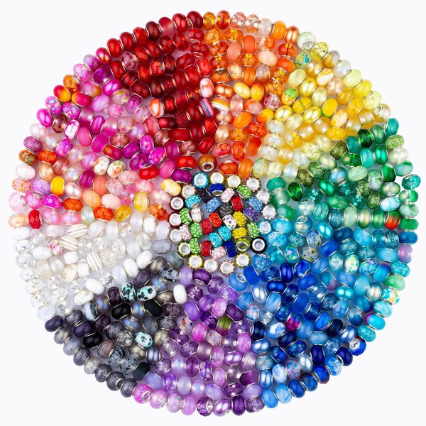 - These European-style large-hole beads are made of resin, plastic and acrylic, which are durable and have colorful and beautiful textures. Enjoy the fun of creation, and we can cultivate the ability of hand-made and fashionable matching.