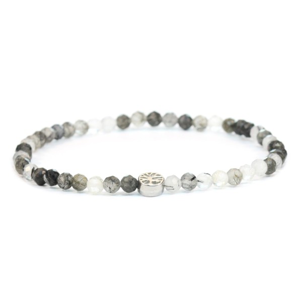 LAKADA Genuine Gemstone Bracelet with Faceted 4 mm Beads and Stainless Steel Tree of Life Healing Stone Protective Stone Bracelet Lucky Charm Talisman Gift, Gemstone, Faceted gemstone