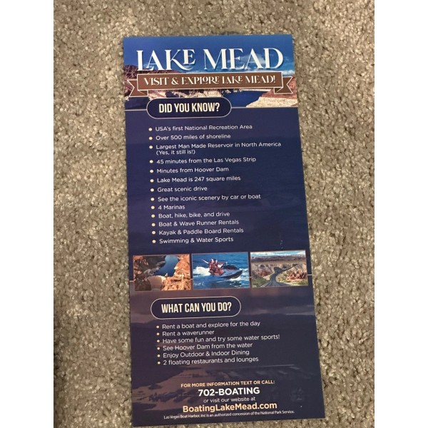 Lake Mead Visit And Explore Boating Pamphlet Brochure Nevada Flyer