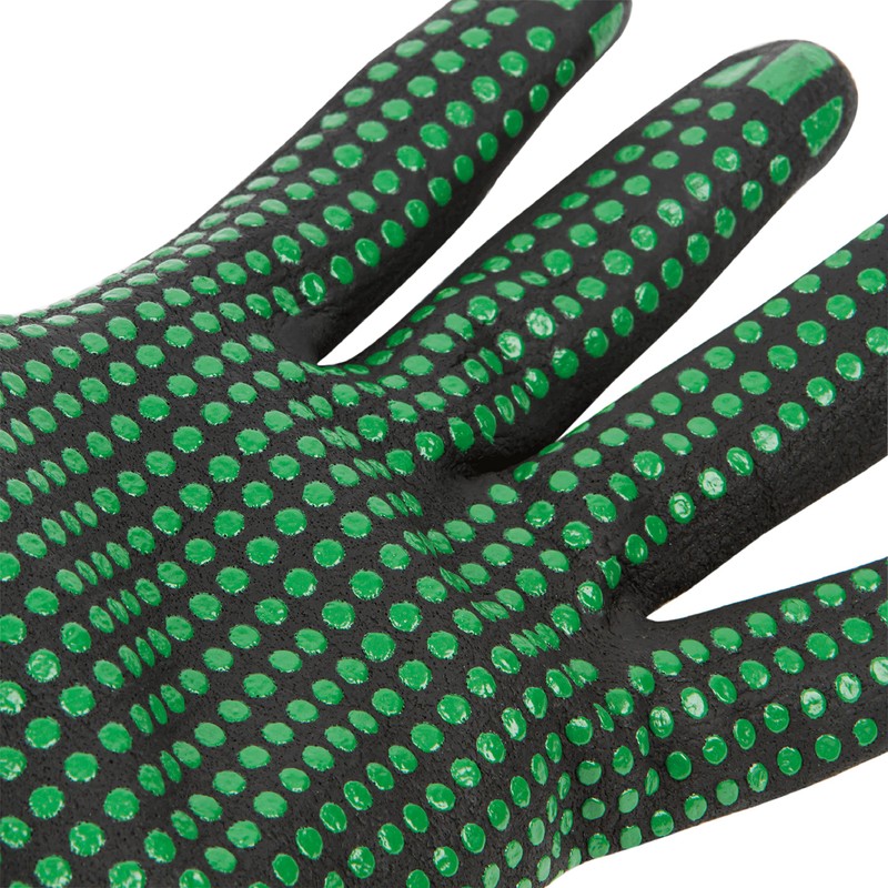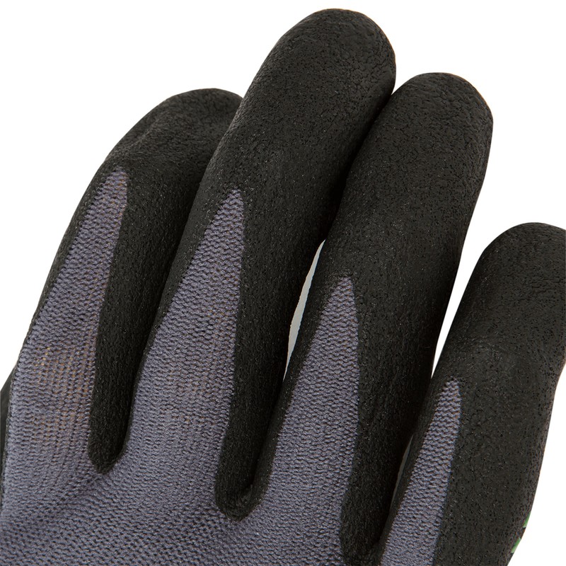- High-tech nitrile foam coated palm with grip-enhancing dots and tread pattern provides a strong and consistent hold even when wet